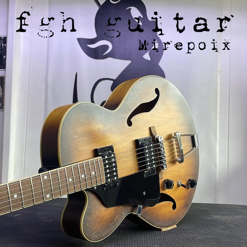 Ce modèle AF 55 est livré d’origine sans pickguard, je vais donc en réaliser un sur mesure grace à la cnc qui équipe l’atelier.